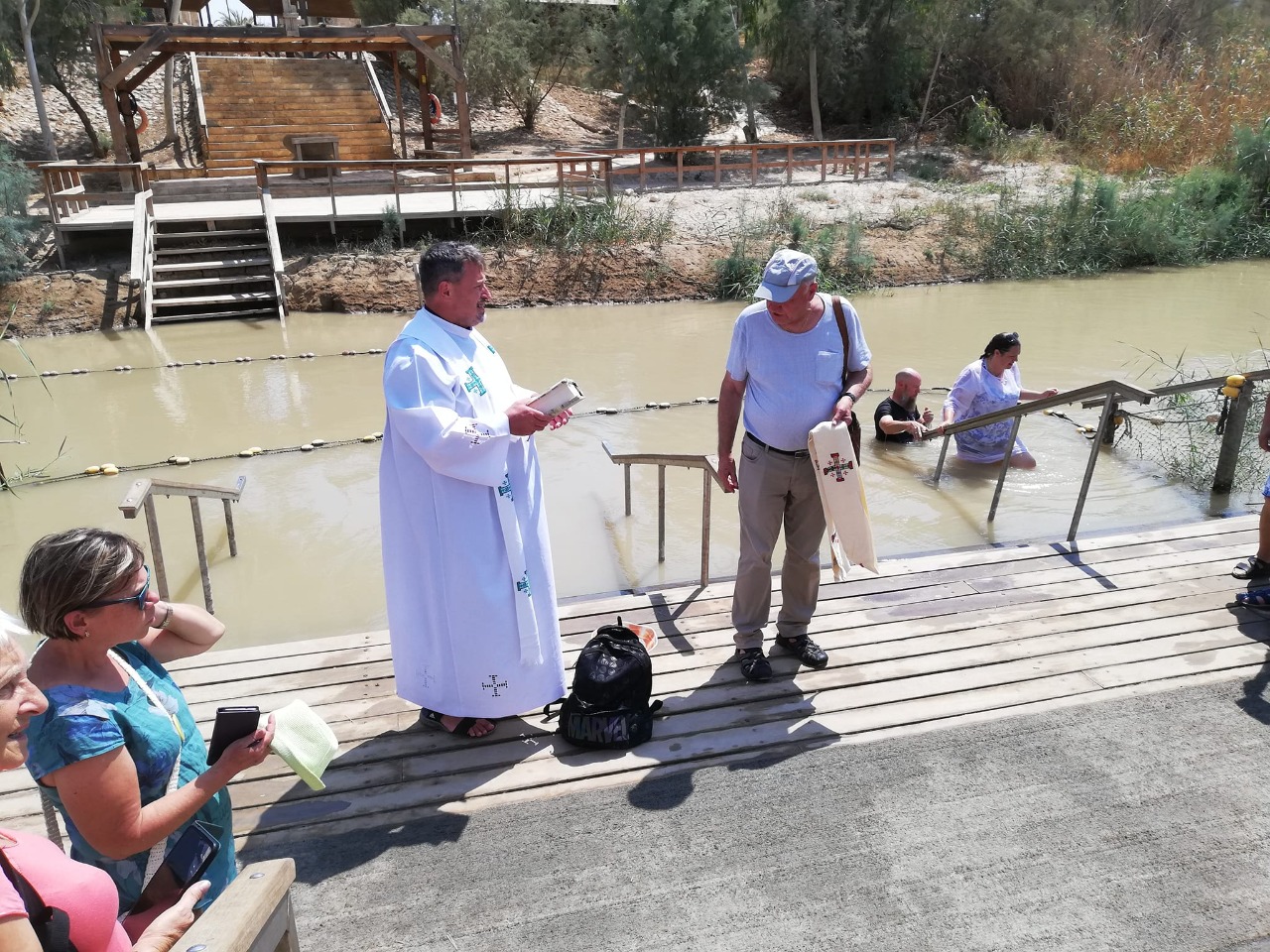 Farář farnosti Ostravice Andrej Slodička u řeky Jordán, kde měl být pokřtěn náš Pán Ježíš Kristus